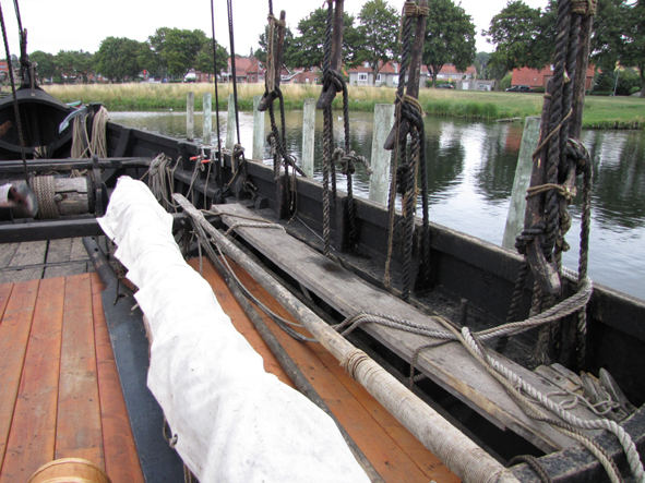 Merchant ships were wider than war ships and could accommodate quite a lot of goods that were usually stocked in the middle, by the mast, and protected by a tent. These ships were slower and heavier, but also more comfortable for travelling and more stable on the water.